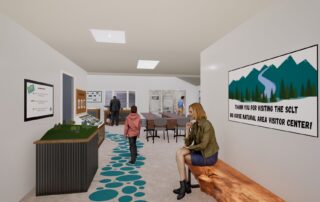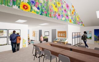 At the request of the Sheridan Community Land Trust, we developed conceptualrenderings to envision the transformation of an existing space into a dynamic exhibit area.With minimal floor plan changes, the design introduces opportunities to showcase theLand Trust’s mission and impact through history displays, maps, and interactive exhibits.These renderings are not intended as construction documents but serve as a powerfulfundraising tool, helping the organization imagine—and share—a dedicated space to tellits story. For the Land Trust, this project represents aunique opportunityto present theirwork at this scale and capacity to the broader community